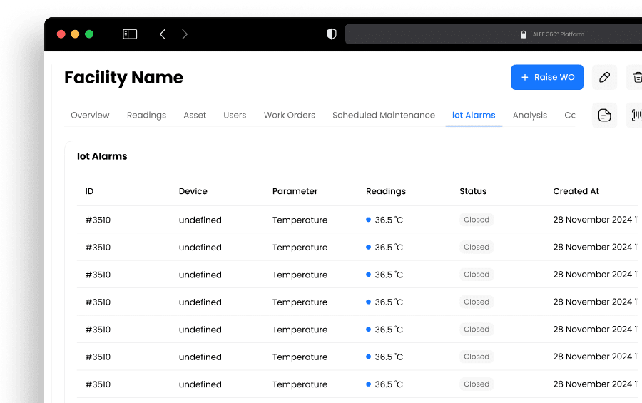 Experience how ALEF 360° CAFM | CMMS can give you complete control over maintenance, assets, workforce, and operational costs - all in one platform.