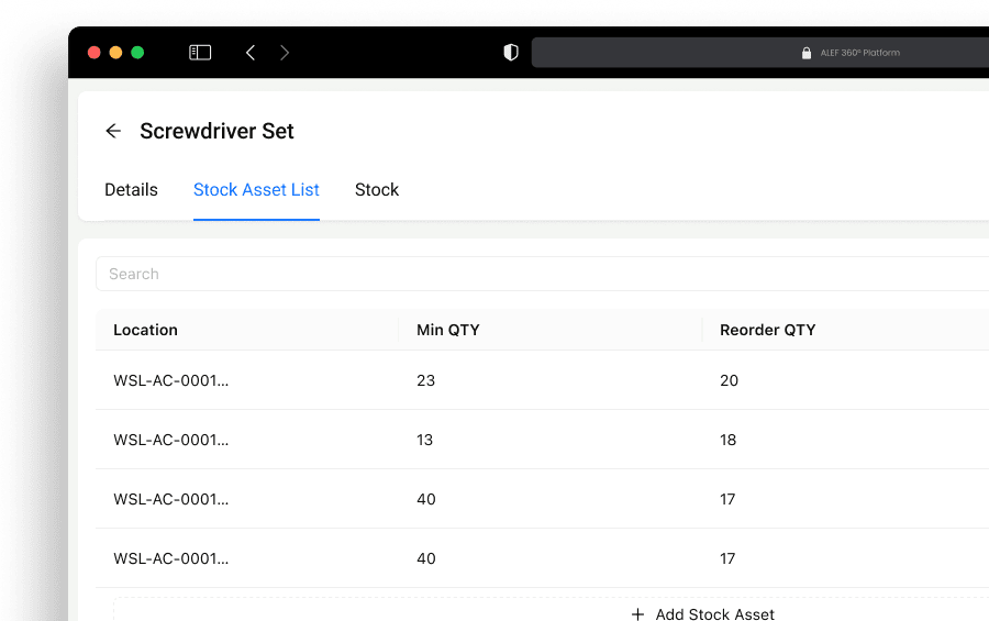 - Configurable reorder levels and send real-time low‑stock notifications for spare parts and consumables