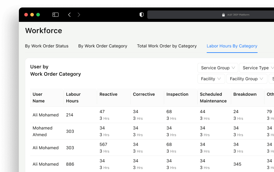 Experience how ALEF 360° CAFM | CMMS can give you complete control over maintenance, assets, workforce, and operational costs - all in one platform.