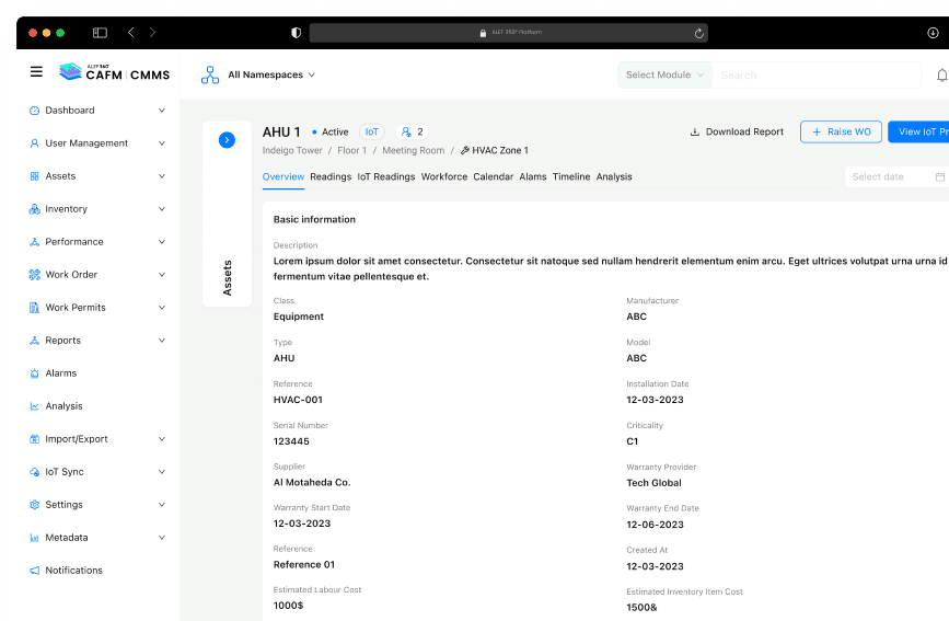 قم بمركزة عمليات الأصول لديك وانتقل إلى ما هو أبعد من الصيانة الأساسية باستخدام سير عمل الصيانة الذكية والتنبيهات القائمة على الحالة وتتبع دورة حياة الأصول - وكلها مصممة لتمديد عمر الأصول وتحسين الأداء.